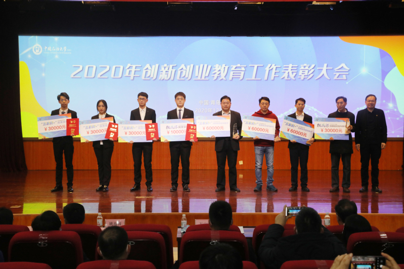 万云波宣读《2020年学校创新创业教育工作表彰决定》。刘建林、梁法春荣获“创新创业教育卓越贡献奖”荣誉称号,李峰弼荣获“2020年‘三大赛’工作突出贡献个人”称号,学院第十二届“挑战杯”中国大学生创业计划竞赛银奖团队、中国研究生能源装备创新设计大赛一等奖团队上台领取奖牌和荣誉证书。