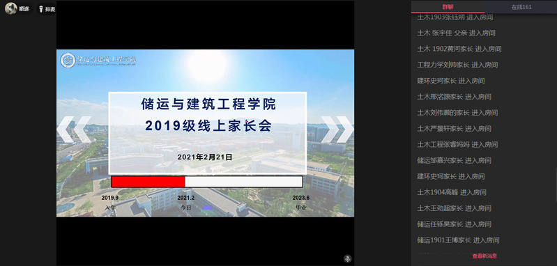 畅通渠道、建立机制、密切协同,一直以来,储建学院以完备的家校联动工作体系为学生的教育、管理和服务提供有力支撑。储建学院2019级学生工作组将以此次线上家长会为契机,通过学情通报、线上家访、资讯分享等形式,与学生家长加强常态化联系,凝聚育人合力,切实提升学生工作水平、提高学生培养质量。